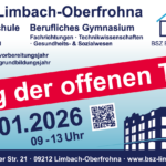 Am 21. Januar 2026 um 18 Uhr findet der alljährliche Elternabend für das Berufliche Gymnasium in der Cafeteria des BSZ Limbach-Oberfrohna statt. Dabei wird die Schulart mit ihren Fachrichtungen Maschinenbautechnik, Bautechnik und Gesundheits- und Sozialwesen vorgestellt. Des Weiteren informieren wir Sie zu den Aufnahmevorraussetzungen, zum Bewerbungsverfahren sowie zum Ablauf der 3 Schuljahre. Außerdem werden die verschiedenen Fächerkombinationen inklusive der Fremdsprachenwahl dargestellt. Zudem haben Sie die Gelegenheit, Fragen zu stellen und mit Lehrkräften ins Gespräch zu kommen.